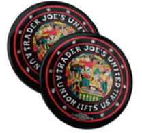 Upon even a detailed review, these logos do not appear similar. As noted by the court, the only similarities are the color red and use of a circle design. Beyond these similarities, all other design elements differ, including the fonts. Additionally, the top logo, which is the union’s main logo, features a prominent fist design associated with the labor movement. The second logo features highly distinctive and colorful design elements not shared by the Trader Joe’s logo. Moreover, none of the union’s logos feature fruit a basket design and the concentric circles highly differ. The court therefore found no likelihood of confusion.